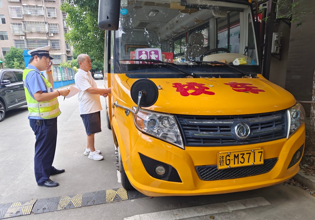 圖為8月28日,民警對(duì)轄區(qū)幼兒園校車進(jìn)行安全檢查。