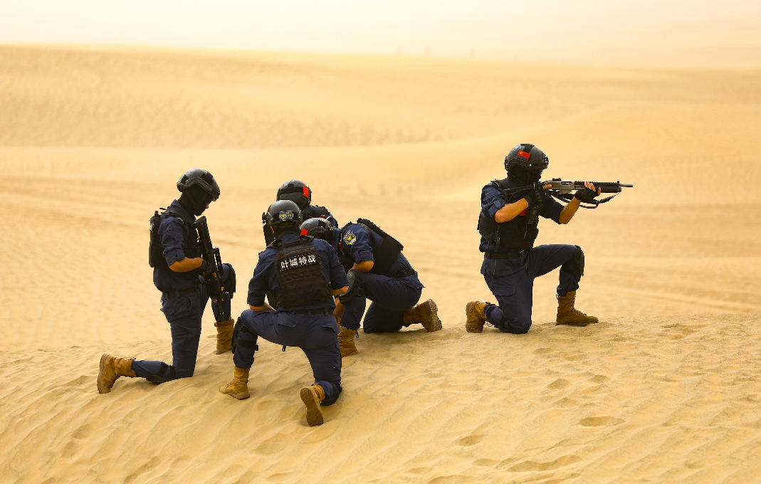 9月5日,新疆維吾爾自治區(qū)葉城縣公安局特警大隊在沙漠戈壁開展秋季實戰(zhàn)化訓(xùn)練,進行沙漠定向越野、極限耐力行軍、沙漠搜捕、武器精準(zhǔn)射擊等科目,應(yīng)對風(fēng)沙、高溫、逆光等復(fù)雜環(huán)境考驗,所有訓(xùn)練科目高效完成,不僅錘煉了特警隊員的體能與專業(yè)技能,更凝聚協(xié)作力量,為守護邊疆穩(wěn)定筑牢了根基。