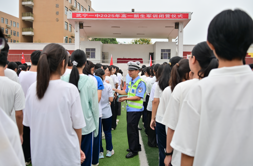 9月7日,江西省武寧縣第一中學舉行高一新生秋季軍訓結營儀式。武寧縣公安局交通管理大隊組織民警走進校園,通過集中宣傳、面對面交流、發(fā)放宣傳單等方式,提升學生們的交通安全意識和自我保護能力。
