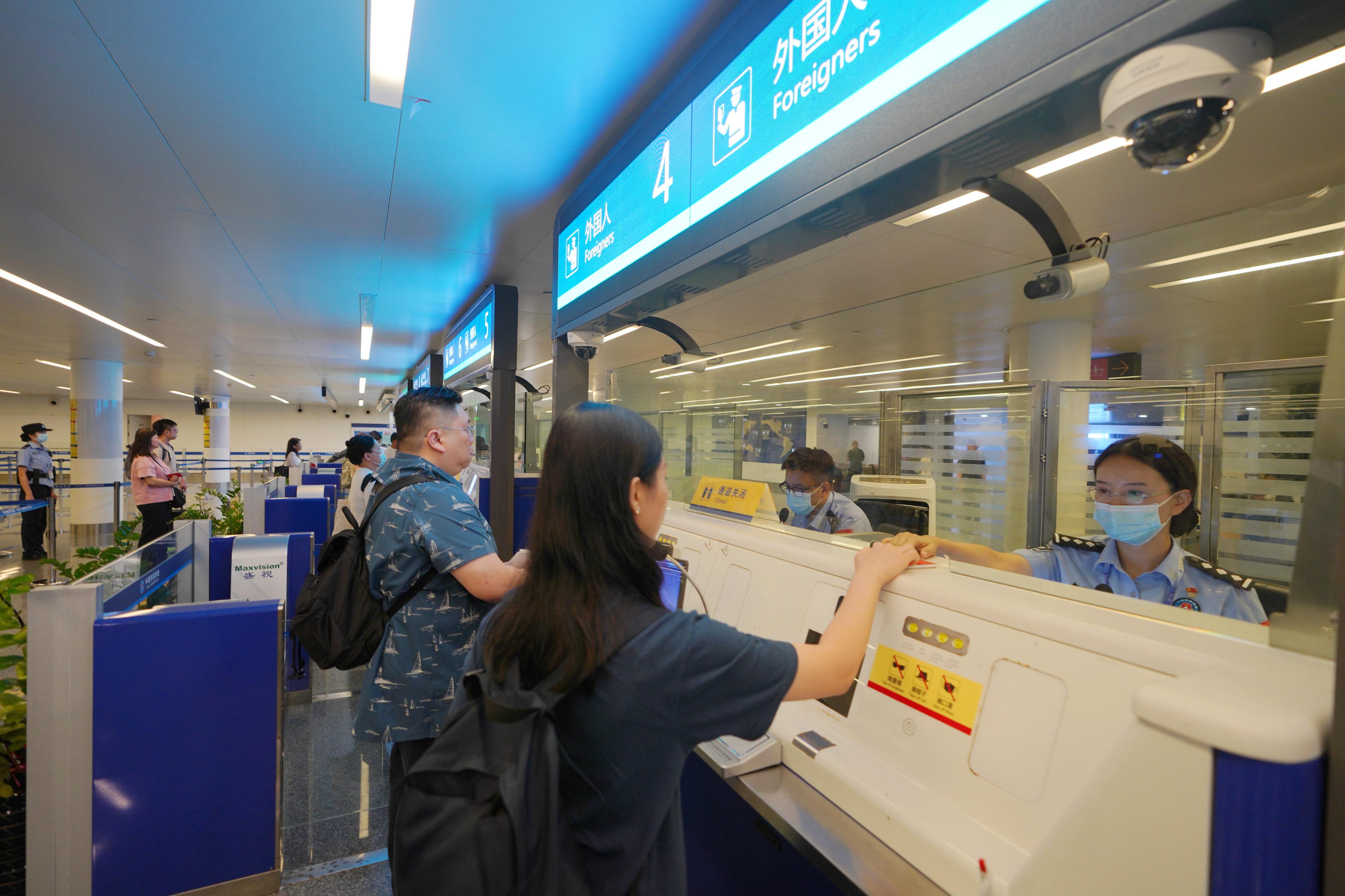 圖為“朱槿花服務(wù)隊”隊員對入境的參展客商進行證件查驗。梁簫 攝