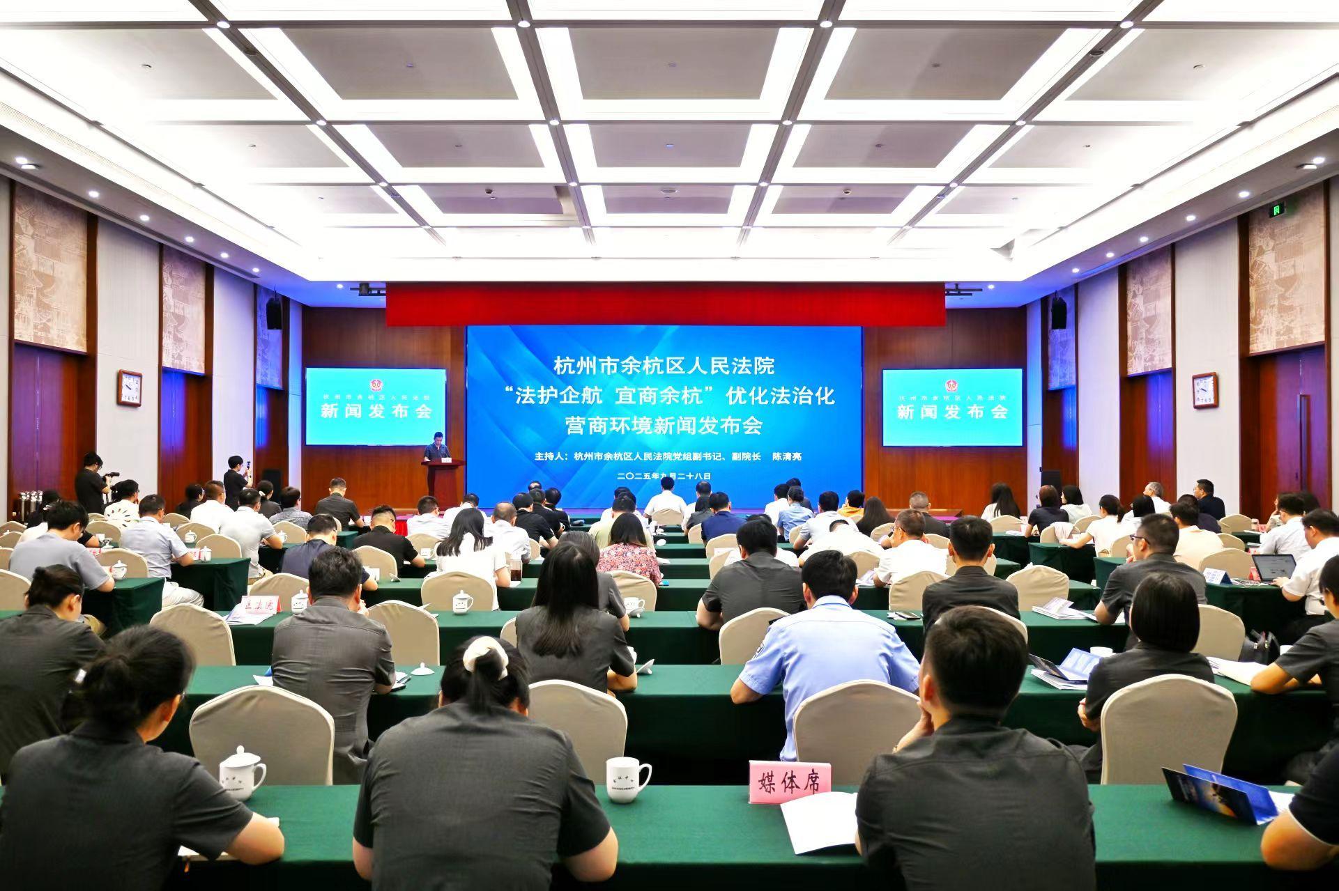 2025年9月28日,浙江省杭州市余杭區(qū)人民法院召開“法護企航,宜商余杭”優(yōu)化法治化營商環(huán)境新聞發(fā)布會。作為“浙江經(jīng)濟第一區(qū)”法院,余杭區(qū)人民法院連續(xù)兩年部署開展“抓源促治 法護營商”主題年,以“余法護企領跑行動”為抓手統(tǒng)籌全院重點工作,為轄區(qū)市場主體創(chuàng)造既充滿活力又安定有序的法治環(huán)境,為余杭“我負責陽光雨露,你負責茁壯成長”營商環(huán)境金名片提亮法治底色。