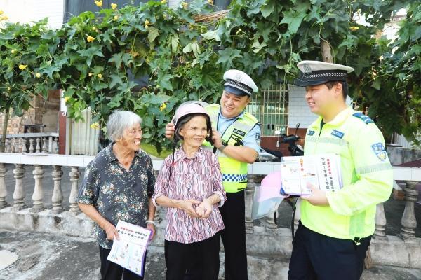 圖為10月9日,民警向留守老人普及交通安全知識。
