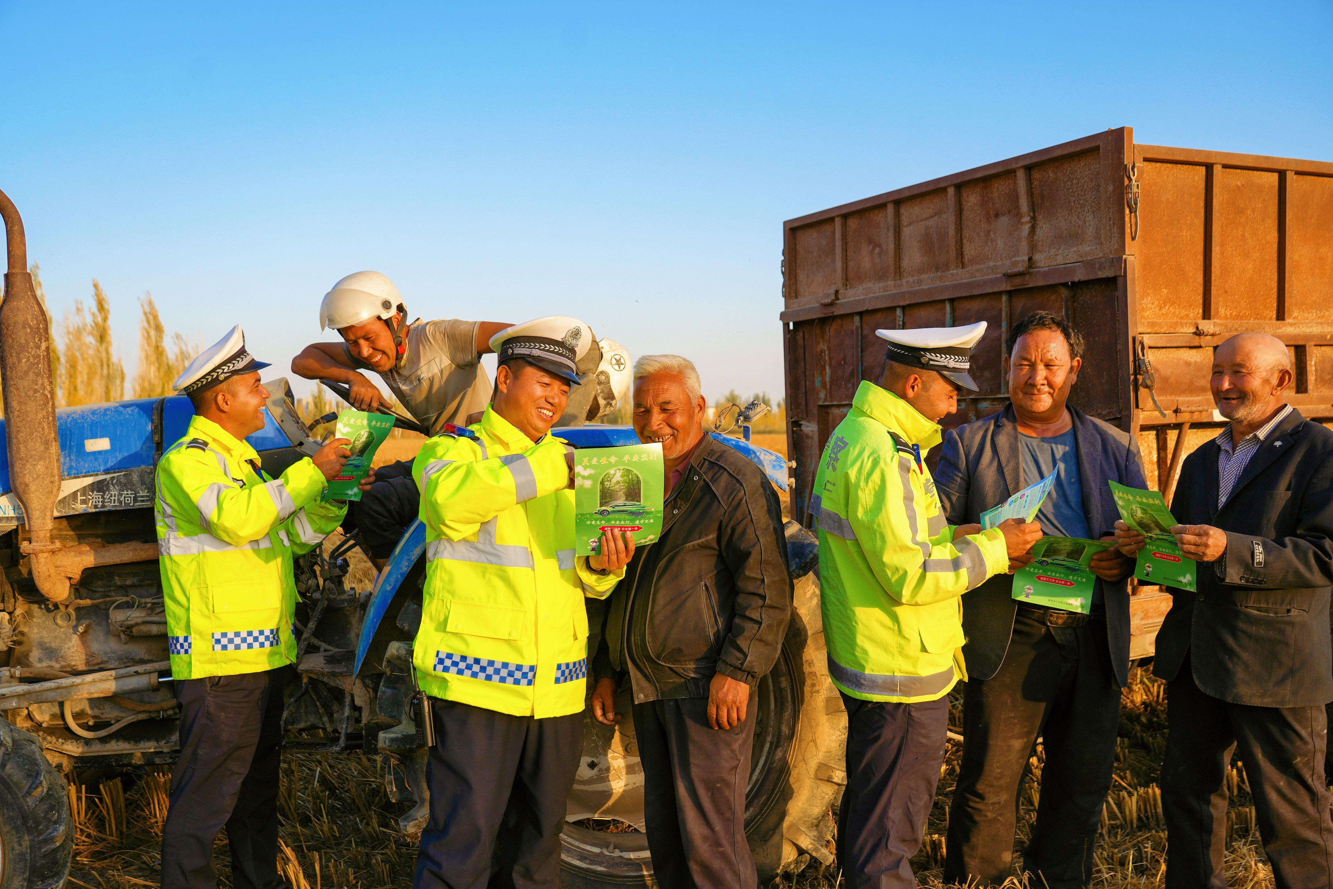 連日來(lái),新疆溫宿縣公安局交通管理大隊(duì)主動(dòng)作為,組織民警深入轄區(qū)各鄉(xiāng)鎮(zhèn)的田間地頭,零距離開(kāi)展交通安全宣傳活動(dòng),并對(duì)農(nóng)用車輛進(jìn)行安全“體檢”,為秋收農(nóng)忙系上“安全帶”。