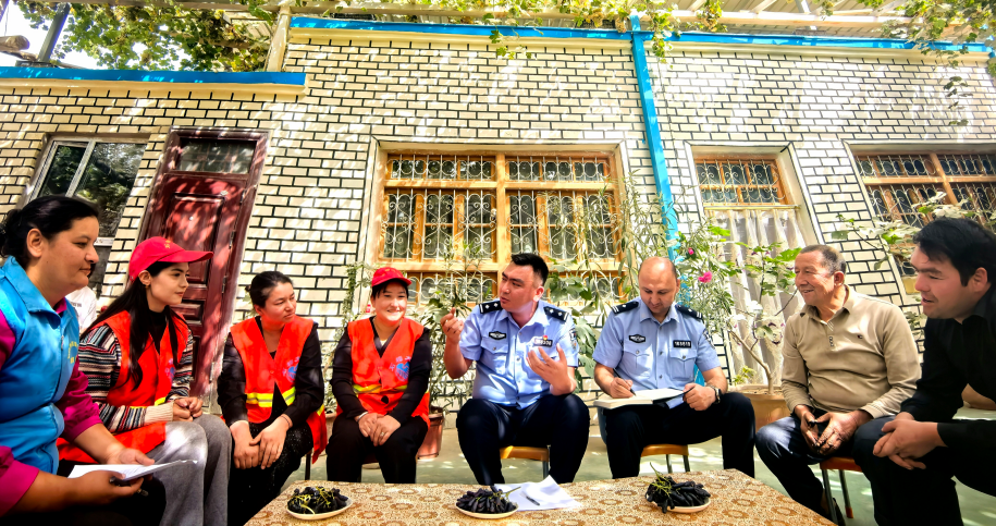 “石榴大媽”志愿服務(wù)隊(duì)由全國“楓橋式公安派出所”、葉城縣公安局伯西熱克派出所組建,900余名志愿者奔走于全鎮(zhèn)19個(gè)村,走出一條在“家門口”排憂解難的新路子。
