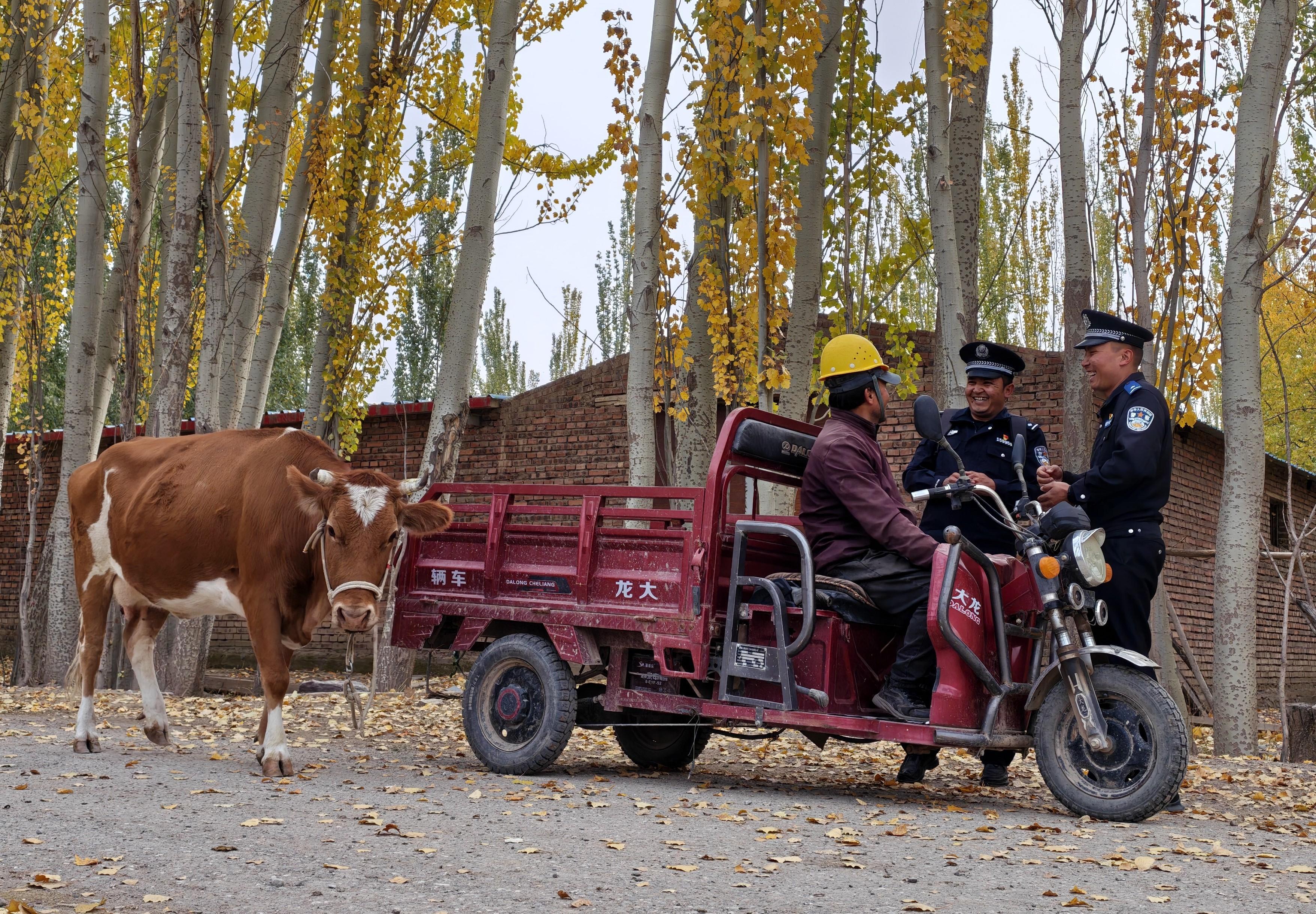 10月21日,新疆烏恰縣公安局黑孜葦鄉(xiāng)派出所民輔警,攜帶便民工具及普法宣傳資料,深入康什維爾村田間地頭,進村入戶走訪轄區(qū)群眾,為群眾辦實事的同時,開展普法宣傳,解決村民訴求,筑牢鄉(xiāng)村豐收“安全盾”。