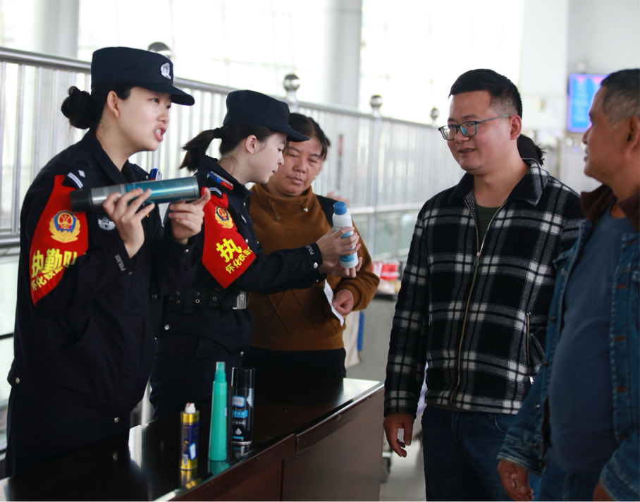 “旅客們,這些屬于易燃易爆危險物品,禁止攜帶進(jìn)站乘車?!?1月5日,湖南懷化火車站進(jìn)站安檢口,車站民警在對旅客進(jìn)行安全宣傳。