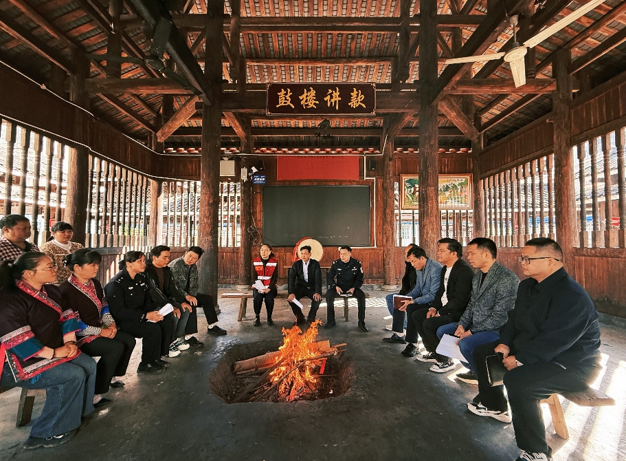 11月14日,廣西壯族自治區(qū)柳州市三江侗族自治縣古宜鎮(zhèn)南站社區(qū)祥和鼓樓內(nèi),政法干警與社區(qū)干部、居民齊聚一堂,開展“鼓樓議事”,面對面調(diào)解糾紛、分析治安形勢,共同為法治社區(qū)建設(shè)建言獻(xiàn)策,凝聚平安合力。