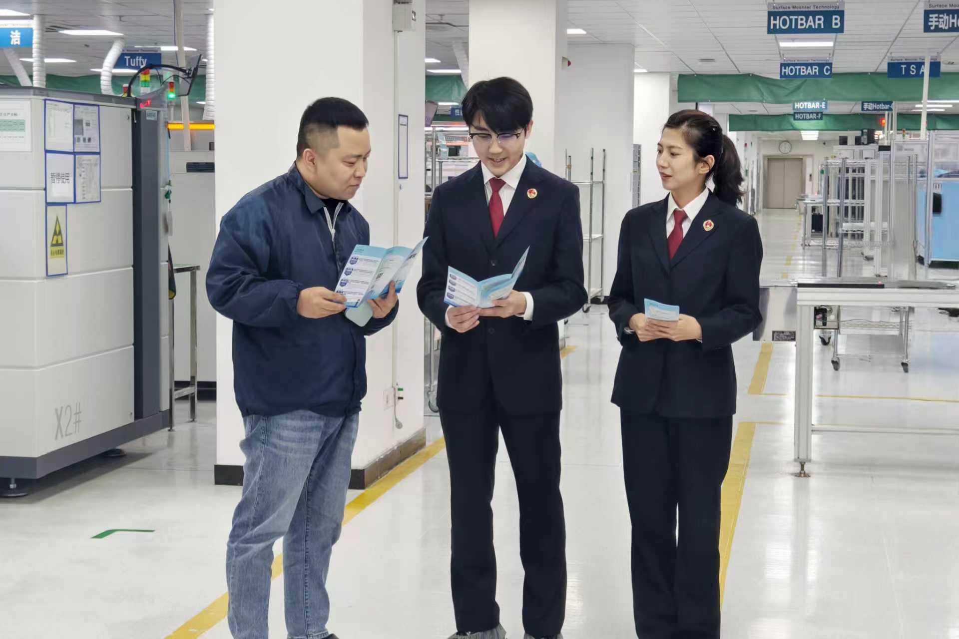 近日,江蘇省南京市江寧經(jīng)濟(jì)技術(shù)開發(fā)區(qū)人民檢察院園區(qū)檢察官走進(jìn)外資企業(yè)開展“送法上門”活動,向企業(yè)員工介紹園區(qū)檢察官工作并推廣“江開檢企通”微信小程序。