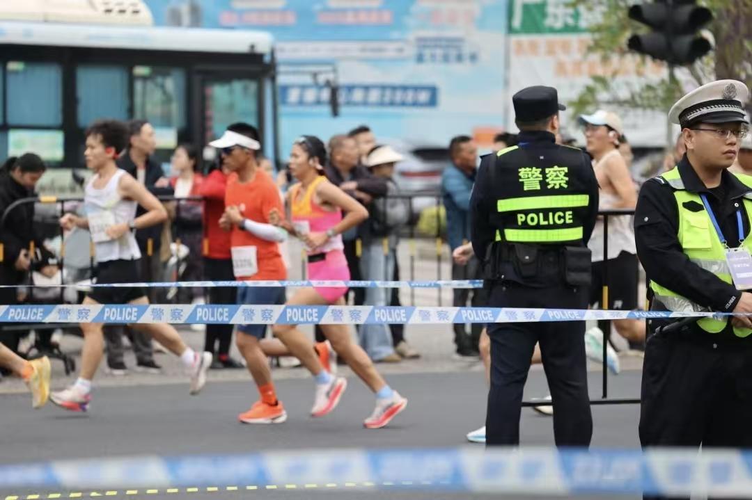 賽事過程中,民警們時刻關注選手狀態(tài),對突發(fā)抽筋、暈倒等情況的參賽選手第一時間實施緊急救助,以“溫情藍”守護每一位跑者的安全。