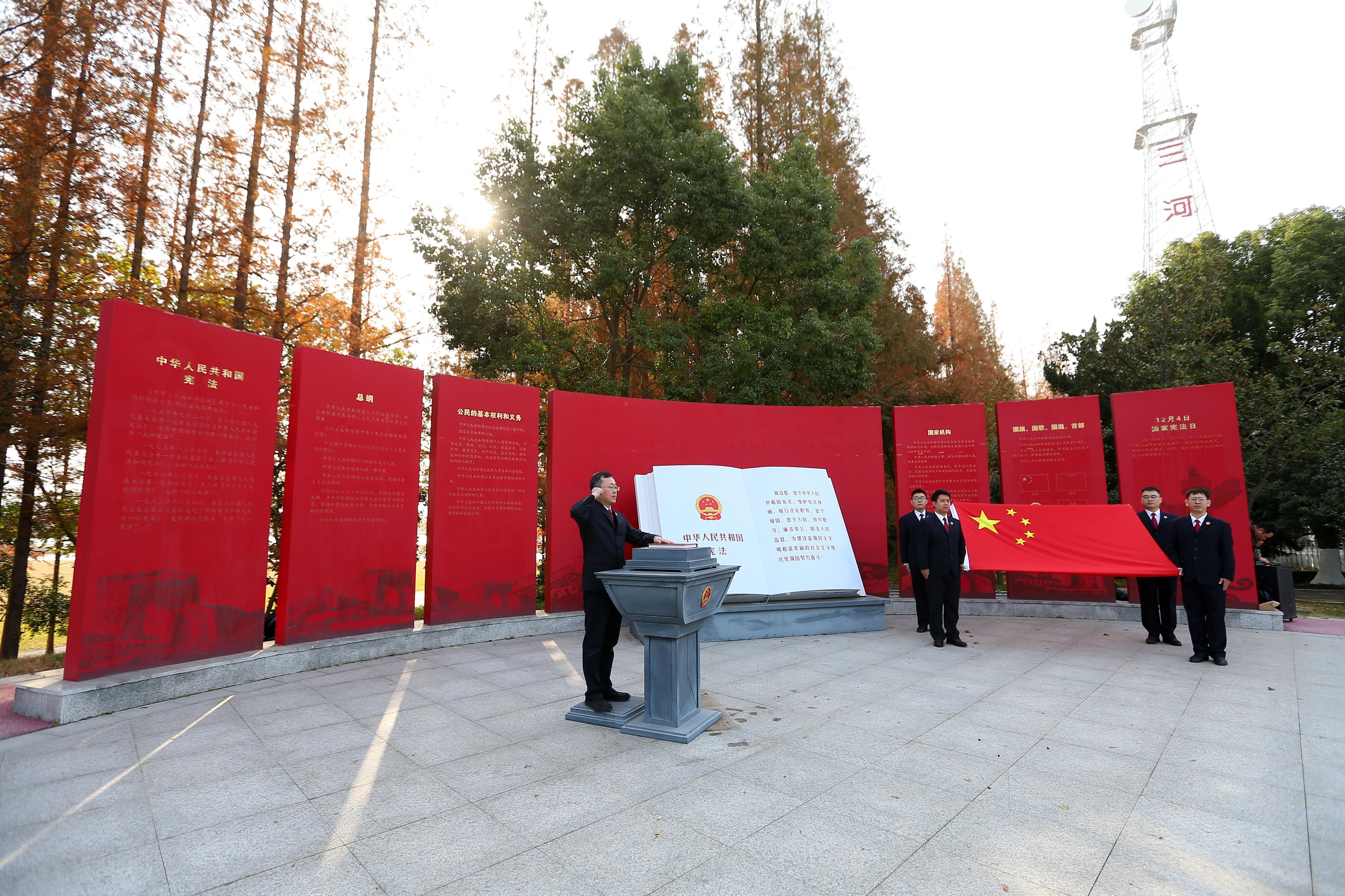 12月1日上午,江蘇省淮安市洪澤區(qū)人民檢察院在江蘇省三河閘管理所憲法宣誓臺(tái)前莊嚴(yán)舉行憲法宣誓儀式。在該院檢察長(zhǎng)居寧超的帶領(lǐng)下,檢察干警右手舉拳擲地有聲跟誦憲法誓詞,展現(xiàn)了新時(shí)代檢察人員對(duì)憲法的無(wú)限尊崇、對(duì)法治的堅(jiān)定信仰和對(duì)人民的莊嚴(yán)承諾。