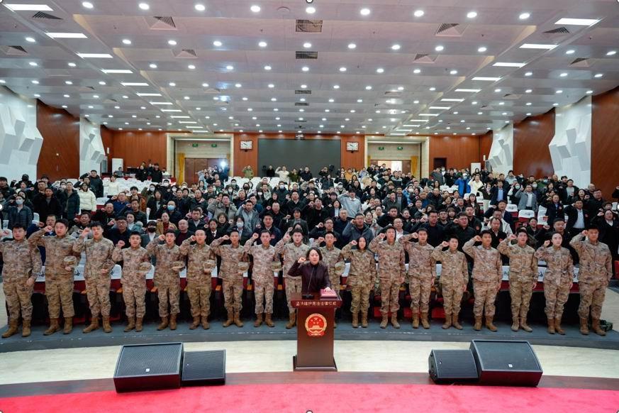 圖為在北京大興區(qū)司法局黨組書記、局長梁曉領誓下,現場300余人面向憲法宣誓。