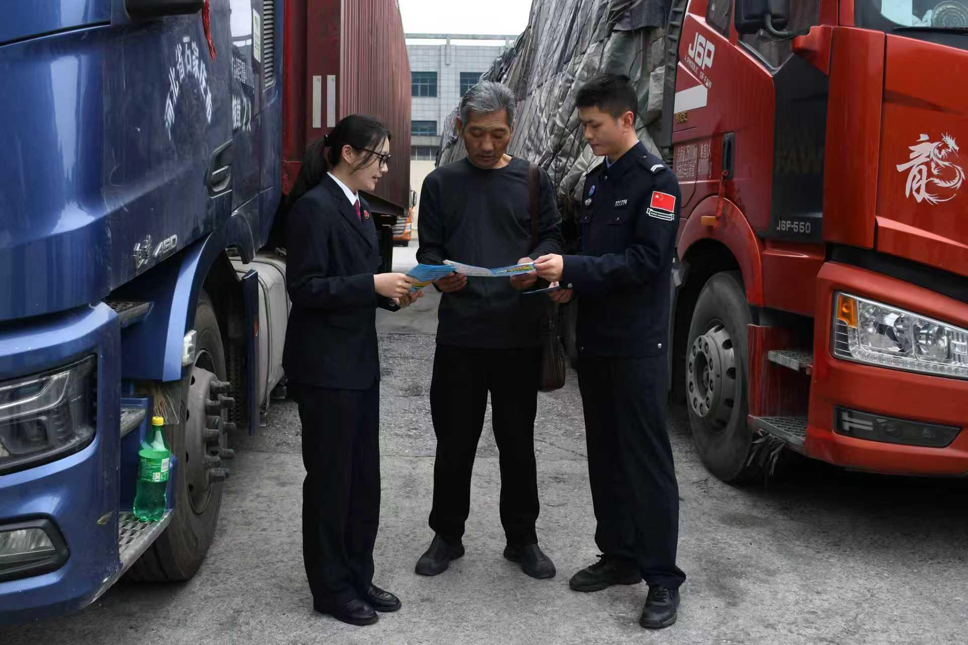 宣誓儀式結(jié)束后,雙方政法干警來到愛店口岸通關(guān)查驗(yàn)現(xiàn)場(chǎng),通過懸掛主題宣傳橫幅、發(fā)放普法宣傳手冊(cè)等形式,向出入境旅客、貨運(yùn)車輛駕駛員、貨運(yùn)代理公司員工及口岸周邊群眾開展普法宣傳。普法宣傳員立足邊境口岸執(zhí)法執(zhí)勤實(shí)際,以通俗易懂的語言解讀憲法核心要義與精神實(shí)質(zhì),宣講出入境管理法律法規(guī)、公民基本權(quán)利與義務(wù)等內(nèi)容。針對(duì)群眾普遍關(guān)心的通關(guān)查驗(yàn)政策、跨境出行注意事項(xiàng)、法律維權(quán)途徑等熱點(diǎn)問題,進(jìn)行面對(duì)面答疑解惑、點(diǎn)對(duì)點(diǎn)精準(zhǔn)指引,切實(shí)將法治服務(wù)送到群眾身邊。