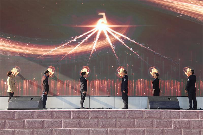 隨后,啟動(dòng)儀式將現(xiàn)場推向高潮。監(jiān)獄長楊天良與民盟廈門市委專職副主委林濤、副監(jiān)獄長唐榕輝、法治日?qǐng)?bào)廈門記者站站長張淑秋、文史專家顏立水、道德模范吳招治共同按下“啟動(dòng)手印”。剎那間,光影流轉(zhuǎn),大屏上一只金色鳳凰浴火騰空,羽翼舒展,化為“鳳凰花開”品牌標(biāo)識(shí)。這簇由火焰中生出的花朵,恰如高墻內(nèi)靜待重生的靈魂,在淬煉中孕育綻放的可能。
