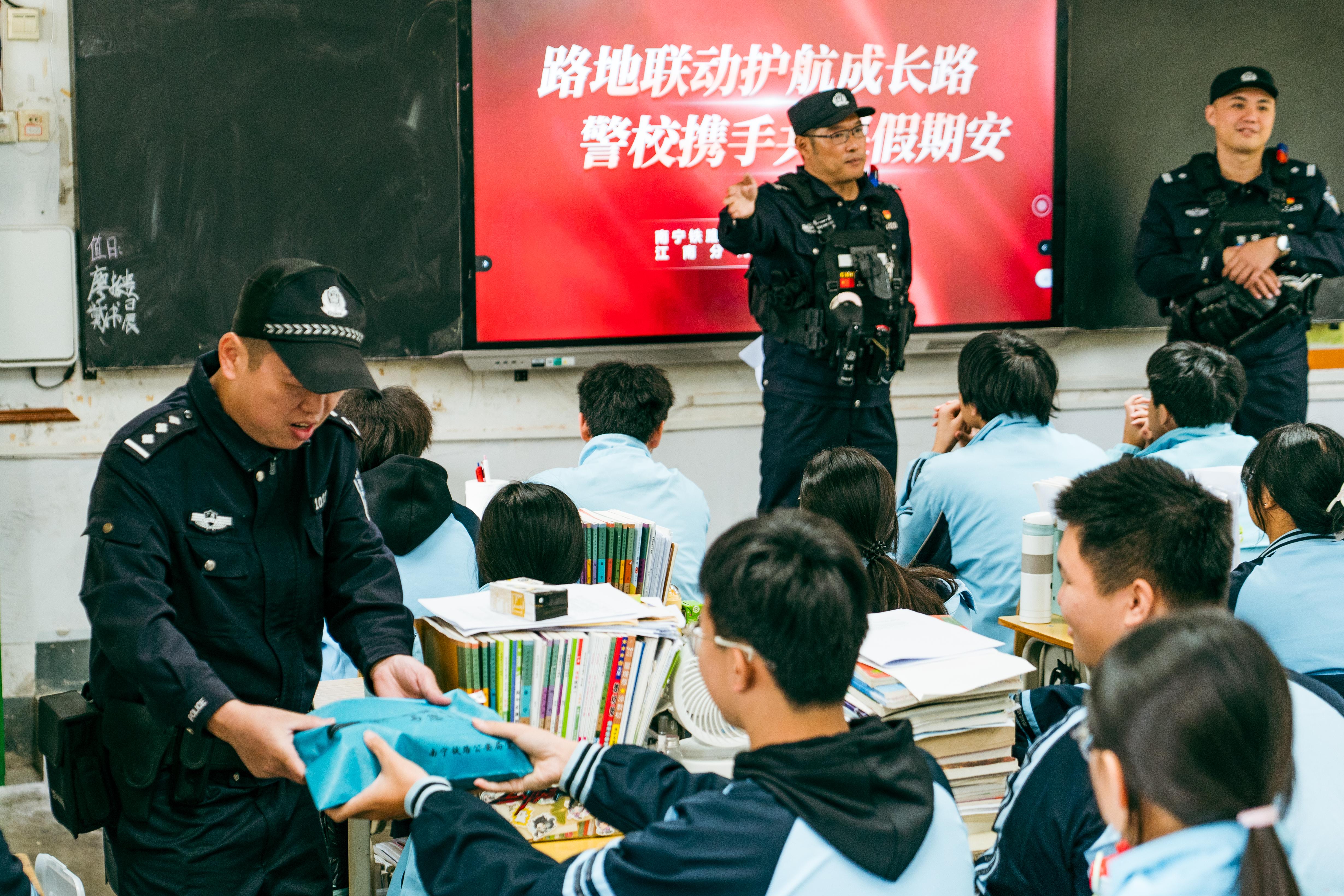近日,南寧鐵路公安局南寧公安處南寧南站派出所聯(lián)合南寧市公安局,走進(jìn)南寧市江西中學(xué)開展“護(hù)航成長(zhǎng)路”安全教育活動(dòng)?;顒?dòng)中,民警通過(guò)現(xiàn)場(chǎng)講解、互動(dòng)問(wèn)答等形式,向?qū)W生普及鐵路安全、防詐騙等知識(shí),進(jìn)一步增強(qiáng)青少年安全意識(shí),筑牢假期安全防線。