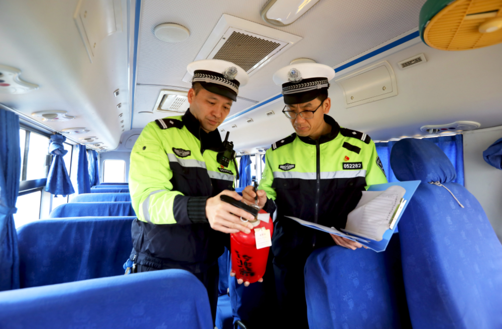 圖為2月27日,民警在分宜縣第六中學(xué)對(duì)校車(chē)進(jìn)行安全檢查。