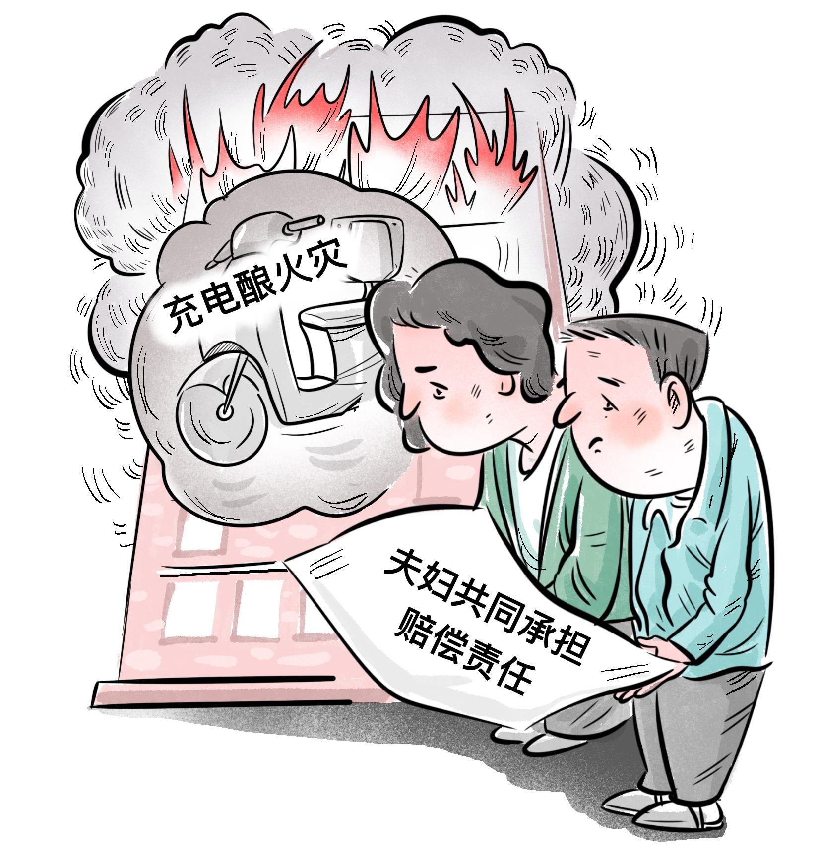 將電瓶車(chē)推回家充電,不料卻因此引發(fā)火災(zāi)并造成人員傷亡,責(zé)任應(yīng)由誰(shuí)承擔(dān)?近日,重慶市江北區(qū)人民法院審結(jié)一起因電瓶車(chē)違規(guī)充電導(dǎo)致火災(zāi)而引發(fā)的生命權(quán)糾紛案件,一審判決車(chē)主夫婦賠償喪葬費(fèi)、死亡賠償金、被撫養(yǎng)人生活費(fèi)等93萬(wàn)余元,判決物業(yè)公司賠償精神損害撫慰金、喪葬費(fèi)等36萬(wàn)余元。目前,該判決已生效。