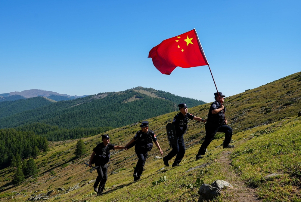 新疆阿勒泰:戍邊民警巡邏踏查 確保邊境地區(qū)安全穩(wěn)定