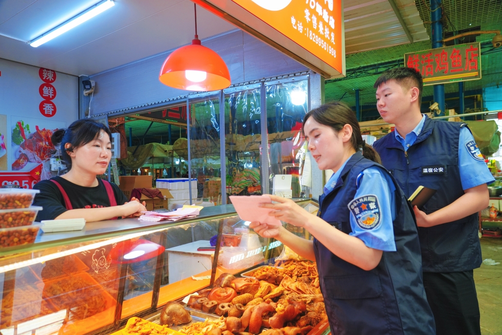 為切實守護(hù)人民群眾“菜籃子”安全,8月11日,新疆溫宿縣公安局環(huán)食藥偵大隊組織精干警力,對轄區(qū)內(nèi)重點菜市場鹵味熟食、冷凍食品、鮮活水產(chǎn)、糧油米面及新鮮蔬菜等展開了一次全方位食品安全檢查。同時,民輔警加強(qiáng)食品安全法律法規(guī)宣傳,督促商戶嚴(yán)格落實主體責(zé)任,嚴(yán)把進(jìn)貨查驗關(guān),確保所售食品來源可溯、質(zhì)量可靠。