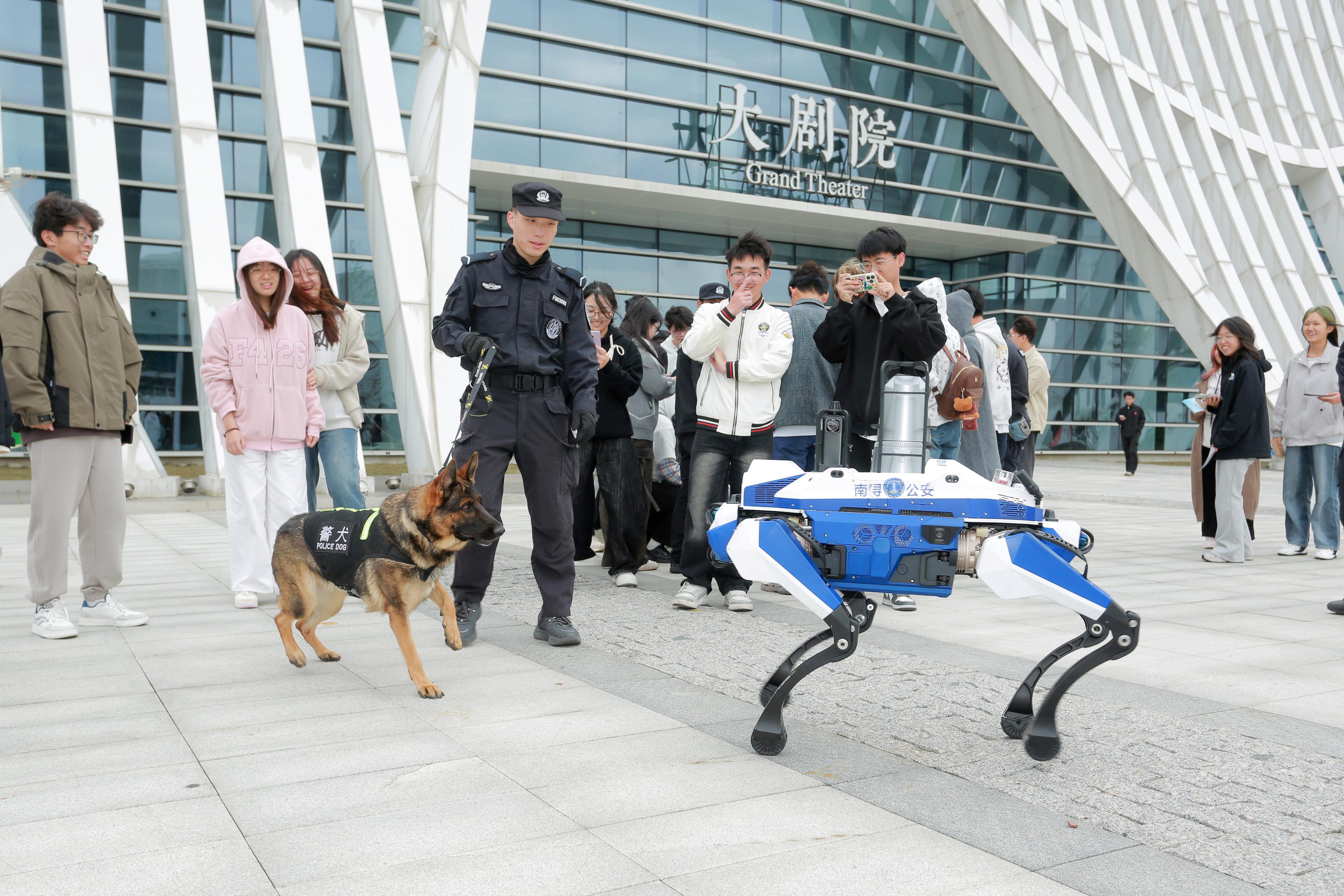 學生小王說:“第一次近距離看到緝毒犬和機器狗,感覺特別震撼!緝毒犬特別靈敏,馴導員剛把藏了模擬毒品的箱子擺好,它立馬就聞著味兒湊過去,尾巴還輕輕晃,又專業(yè)又可愛;機器狗更讓我眼前一亮,它能靈活穿梭在市集的桌椅之間,攝像頭實時傳輸畫面,還能根據(jù)指令停下來‘檢查’,科技感滿滿?!?/p>