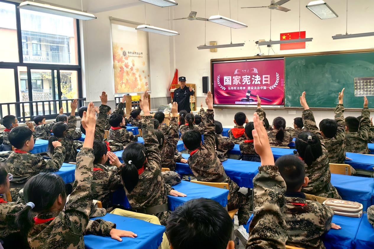 2025年12月2日,在第十二個“國家憲法日”來臨之際,浙江出入境邊防檢查總站寧波機場邊檢站的民警走進寧波市德培小學,為同學們帶來了一堂生動而富有教育意義的憲法知識課。民警用通俗易懂的語言,向?qū)W生們講解了憲法的基本內(nèi)容和重要意義,幫助大家初步認識到憲法在國家生活中的崇高地位與重要作用。本次“憲法宣傳進校園”活動,不僅豐富了同學們的憲法知識,更是在他們心中深深植下了法治的種子。寧波機場邊檢站將持續(xù)開展形式多樣、內(nèi)容豐富的校園普法活動,助力引導學生成為懂法、守法、護法的新時代好少年,共同為法治社會建設(shè)注入年輕力量。