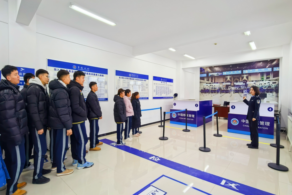 1月7日,新疆阿勒泰地區(qū)第二高級中學(xué)的學(xué)生代表與南開大學(xué)研究生支教團(tuán)成員共同走進(jìn)新疆出入境邊防檢查總站紅山嘴出入境邊防檢查站,“沉浸式”體驗(yàn)邊檢工作,感受國門衛(wèi)士的責(zé)任與擔(dān)當(dāng)。