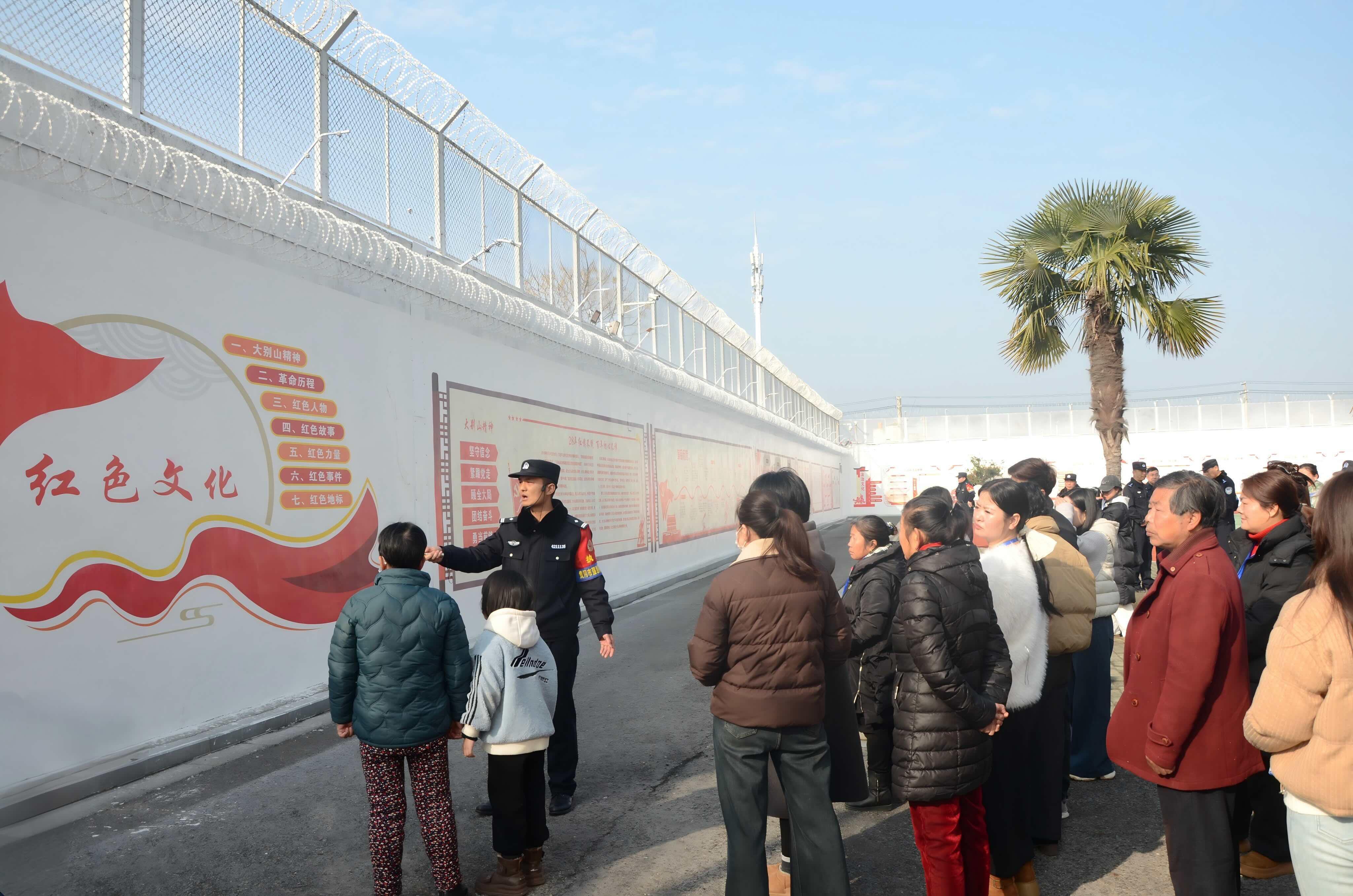 家屬們首先被一面特色文化墻吸引。墻上既有大別山紅色印記、禁毒法律法規(guī)警示,還融入了中醫(yī)藥健康文化與東坡文化,展現(xiàn)出剛?cè)岵挠朔諊?/p>