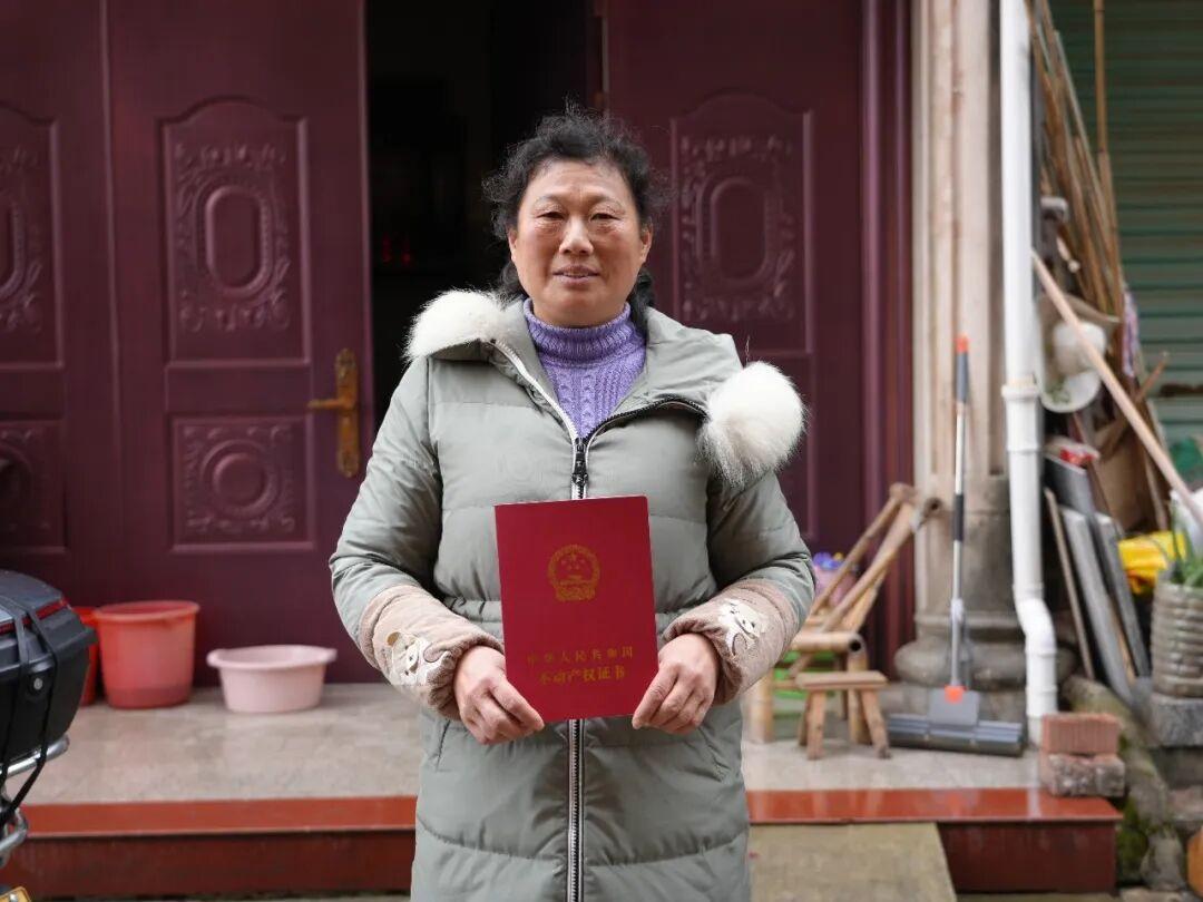 誠興廣場居民孫女士手捧不動產(chǎn)權(quán)證書。