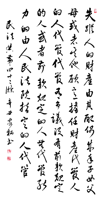民法典第四十二條 失蹤人的財(cái)產(chǎn)由其配偶、成年子女、父母或者其他愿意擔(dān)任財(cái)產(chǎn)代管人的人代管。