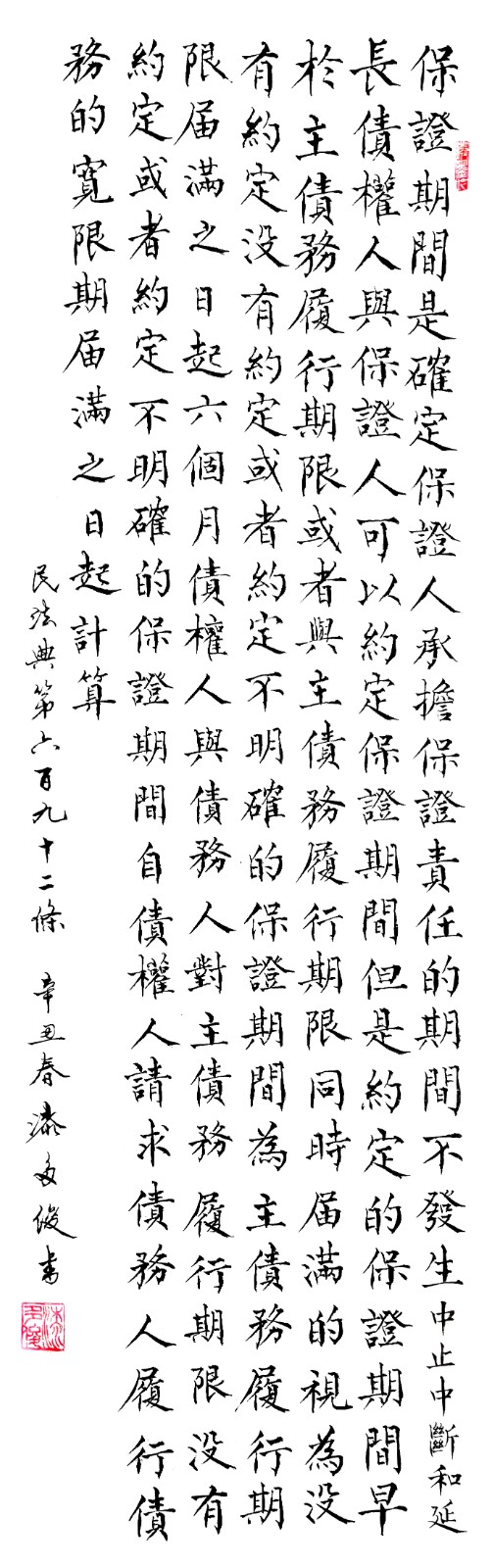 民法典第六百九十二條 保證期間是確定保證人承擔(dān)保證責(zé)任的期間,不發(fā)生中止、中斷和延長(zhǎng)。