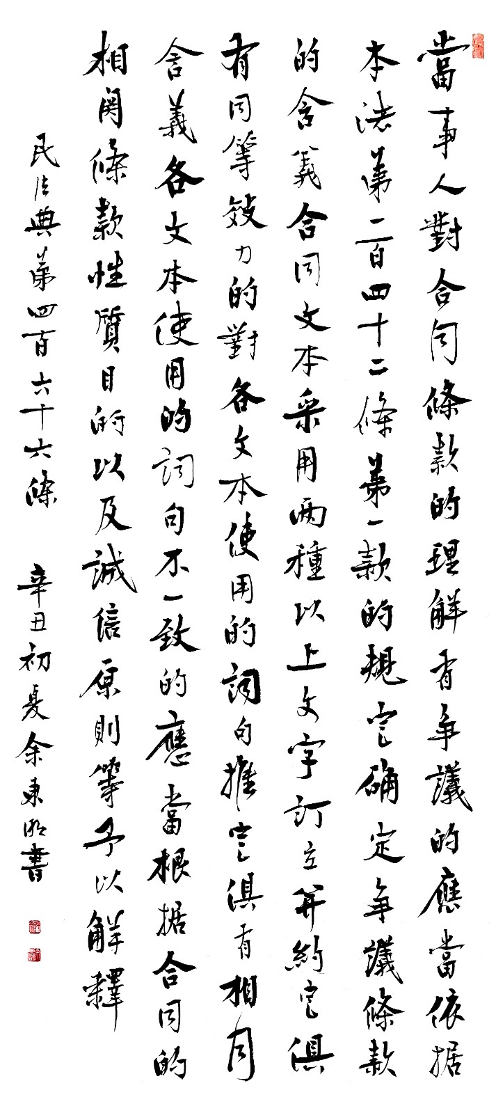 民法典第四百六十六條 當(dāng)事人對合同條款的理解有爭議的,應(yīng)當(dāng)依據(jù)本法第一百四十二條第一款的規(guī)定,確定爭議條款的含義。