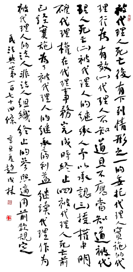 民法典第一百七十四條 被代理人死亡后,有下列情形之一的,委托代理人實(shí)施的代理行為有效: