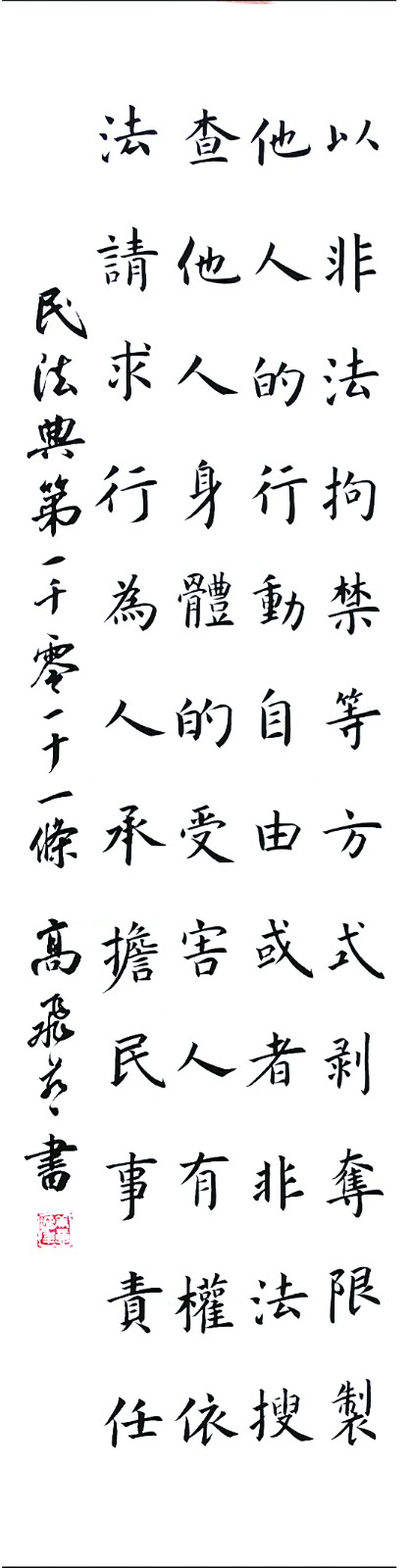 民法典第一千零一十一條 以非法拘禁等方式剝奪、限制他人的行動自由,或者非法搜查他人身體的,受害人有權(quán)依法請求行為人承擔民事責任。