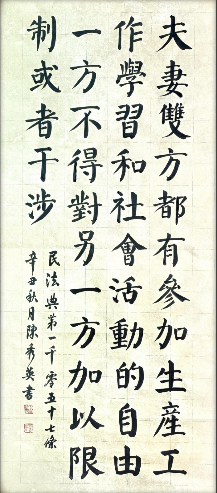 民法典第一千零五十七條 夫妻雙方都有參加生產(chǎn)、工作、學(xué)習(xí)和社會(huì)活動(dòng)的自由,一方不得對另一方加以限制或者干涉。