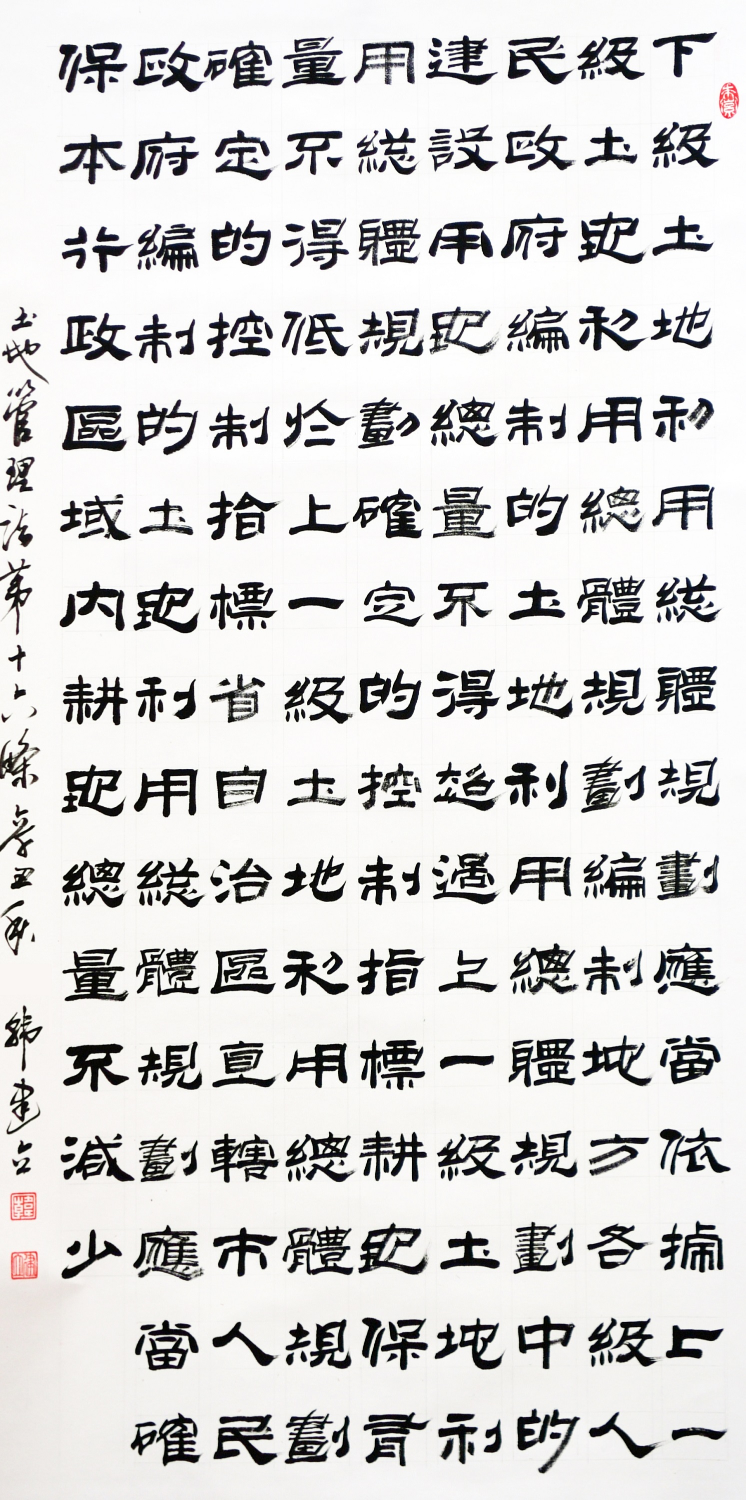 繼1600余位書(shū)法家參與書(shū)寫(xiě)《中華人民共和國(guó)民法典》全部1260條法條之后,法治日?qǐng)?bào)社聯(lián)合自然資源部法規(guī)司、自然資源部書(shū)畫(huà)研究會(huì)和北京昌平書(shū)法家協(xié)會(huì),將筆端對(duì)準(zhǔn)土地管理“一法一條例”,即《中華人民共和國(guó)土地管理法》和《中華人民共和國(guó)土地管理法實(shí)施條例》。