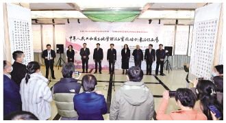 12月1日,“書·法”系列活動(dòng)——中華人民共和國土地管理法與實(shí)施條例書法作品展在中國地質(zhì)博物館開幕。圖為開幕式現(xiàn)場(chǎng)。 法治日?qǐng)?bào)全媒體記者 楊晉峰 攝