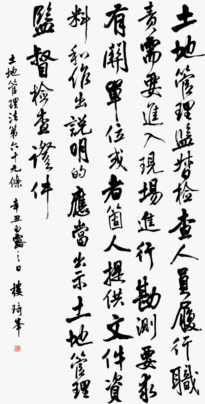 繼1600余位書法家參與書寫《中華人民共和國(guó)民法典》全部1260條法條之后,法治日?qǐng)?bào)社聯(lián)合自然資源部法規(guī)司、自然資源部書畫研究會(huì)和北京昌平書法家協(xié)會(huì),將筆端對(duì)準(zhǔn)土地管理“一法一條例”,即《中華人民共和國(guó)土地管理法》和《中華人民共和國(guó)土地管理法實(shí)施條例》。