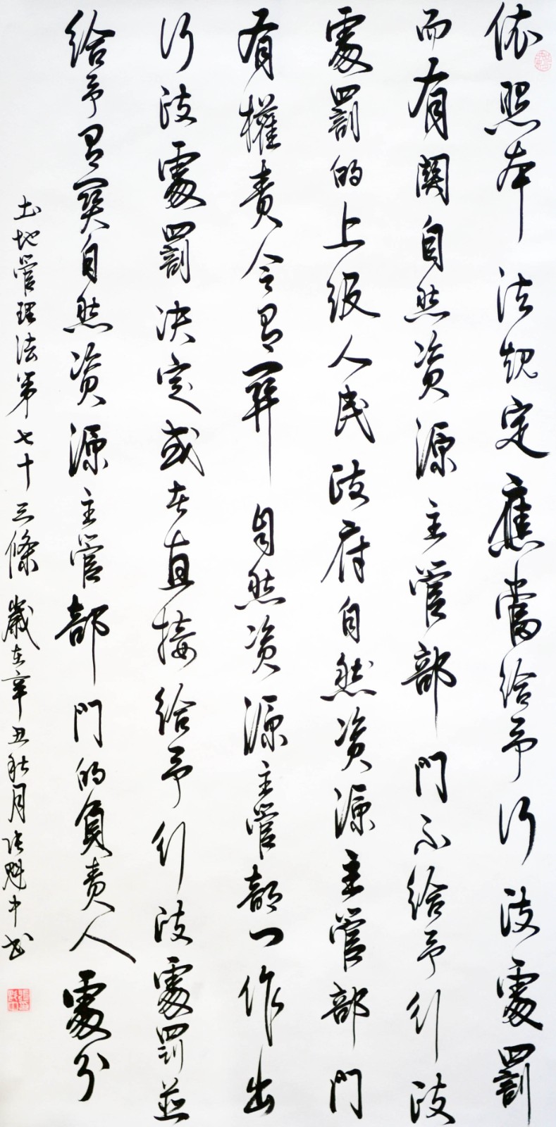 繼1600余位書法家參與書寫《中華人民共和國民法典》全部1260條法條之后,法治日報社聯(lián)合自然資源部法規(guī)司、自然資源部書畫研究會和北京昌平書法家協(xié)會,將筆端對準土地管理“一法一條例”,即《中華人民共和國土地管理法》和《中華人民共和國土地管理法實施條例》。