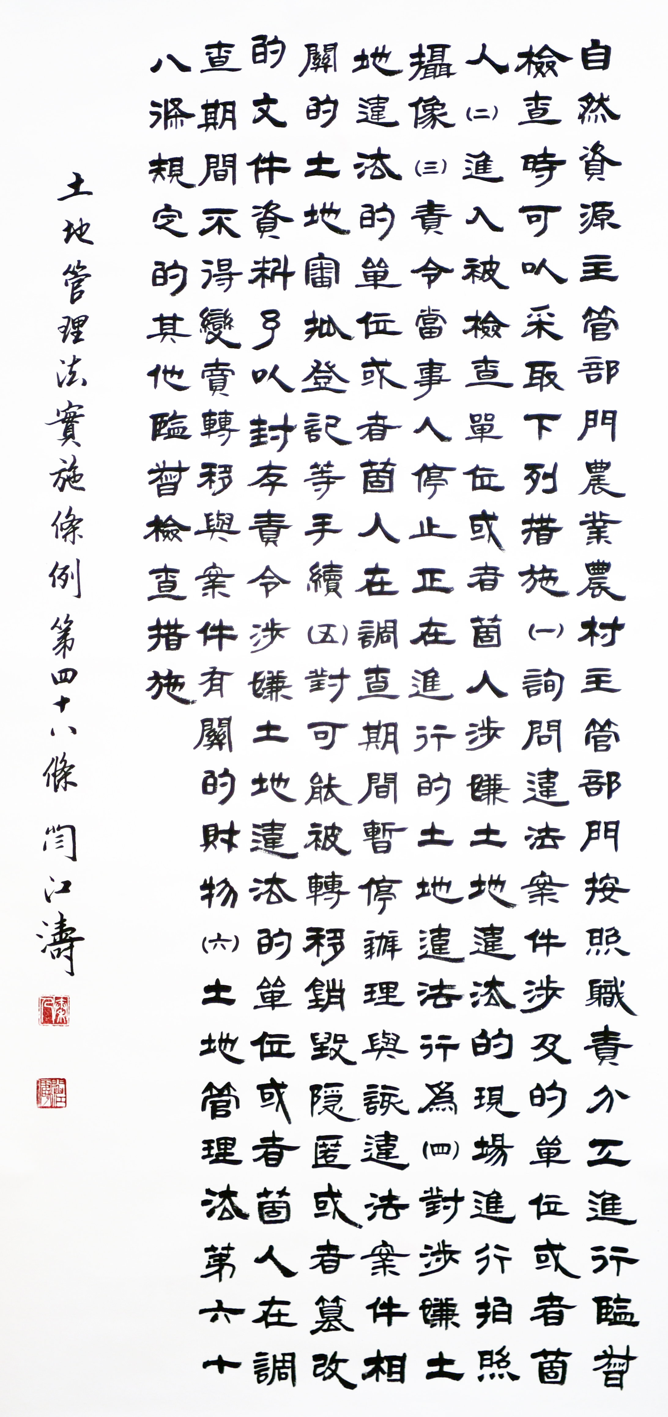 繼1600余位書(shū)法家參與書(shū)寫(xiě)《中華人民共和國(guó)民法典》全部1260條法條之后,法治日?qǐng)?bào)社聯(lián)合自然資源部法規(guī)司、自然資源部書(shū)畫(huà)研究會(huì)和北京昌平書(shū)法家協(xié)會(huì),將筆端對(duì)準(zhǔn)土地管理“一法一條例”,即《中華人民共和國(guó)土地管理法》和《中華人民共和國(guó)土地管理法實(shí)施條例》。