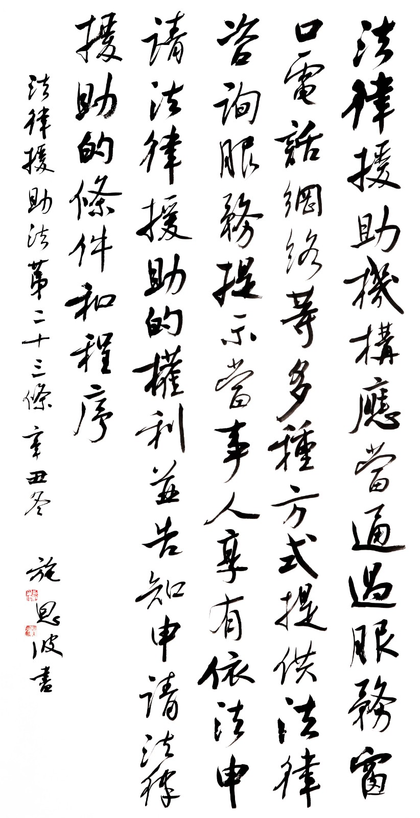 “書·法”活動旨在為創(chuàng)新法治宣傳教育,多開一點腦洞、多花一點心思、多出一點力量、多做一點貢獻,引領(lǐng)和推動更多的人拿起筆來學(xué)法、寫法,在不斷“書·法”過程中,提升自身的法治素養(yǎng),在全社會弘揚法治精神。