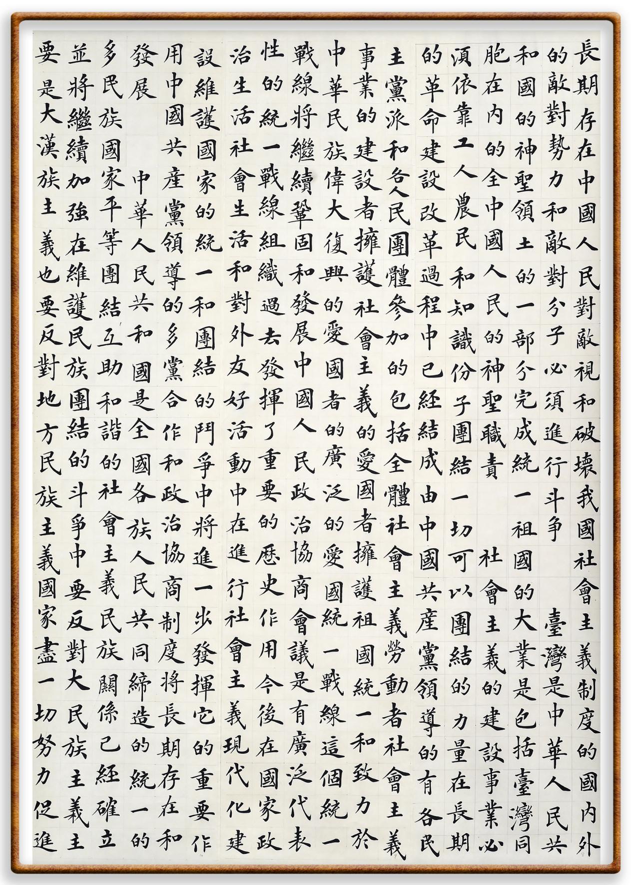 中華人民共和國是全國各族人民共同締造的統(tǒng)一的多民族國家。平等團(tuán)結(jié)互助和諧的社會主義民族關(guān)系已經(jīng)確立,并將繼續(xù)加強。在維護(hù)民族團(tuán)結(jié)的斗爭中,要反對大民族主義,主要是大漢族主義,也要反對地方民族主義。國家盡一切努力,促進(jìn)全國各民族的共同繁榮。