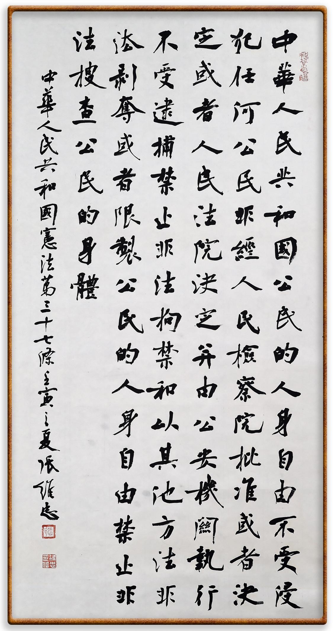 繼《中華人民共和國(guó)民法典》《中華人民共和國(guó)土地管理法》《中華人民共和國(guó)土地管理法實(shí)施條例》《中華人民共和國(guó)法律援助法》之后,法治日?qǐng)?bào)社聯(lián)合北京市司法局、北京書法家協(xié)會(huì),將筆端對(duì)準(zhǔn)《中華人民共和國(guó)憲法》和《中華人民共和國(guó)行政處罰法》。