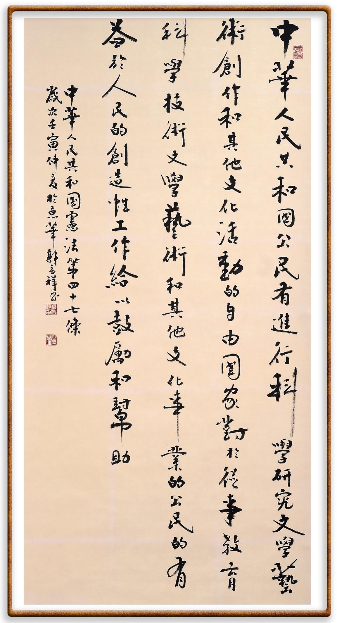 繼《中華人民共和國(guó)民法典》《中華人民共和國(guó)土地管理法》《中華人民共和國(guó)土地管理法實(shí)施條例》《中華人民共和國(guó)法律援助法》之后,法治日?qǐng)?bào)社聯(lián)合北京市司法局、北京書(shū)法家協(xié)會(huì),將筆端對(duì)準(zhǔn)《中華人民共和國(guó)憲法》和《中華人民共和國(guó)行政處罰法》。