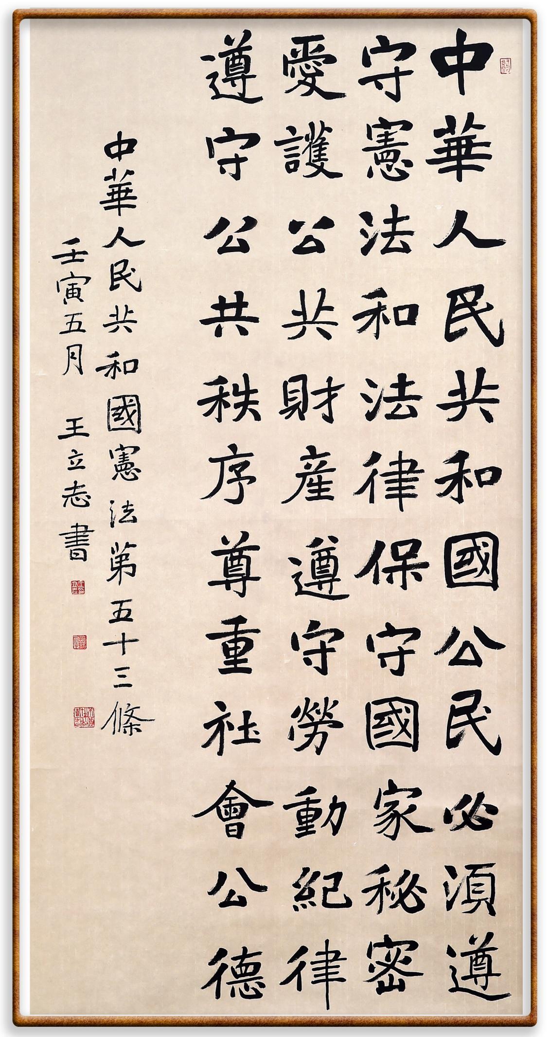 繼《中華人民共和國民法典》《中華人民共和國土地管理法》《中華人民共和國土地管理法實施條例》《中華人民共和國法律援助法》之后,法治日報社聯(lián)合北京市司法局、北京書法家協(xié)會,將筆端對準(zhǔn)《中華人民共和國憲法》和《中華人民共和國行政處罰法》。
