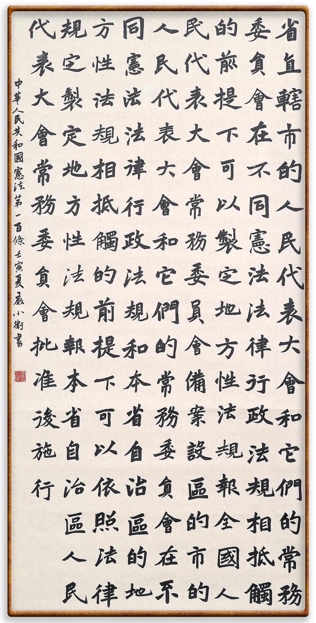 繼《中華人民共和國(guó)民法典》《中華人民共和國(guó)土地管理法》《中華人民共和國(guó)土地管理法實(shí)施條例》《中華人民共和國(guó)法律援助法》之后,法治日?qǐng)?bào)社聯(lián)合北京市司法局、北京書法家協(xié)會(huì),將筆端對(duì)準(zhǔn)《中華人民共和國(guó)憲法》和《中華人民共和國(guó)行政處罰法》。