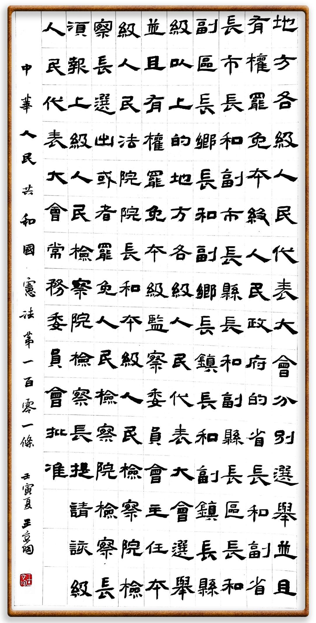繼《中華人民共和國(guó)民法典》《中華人民共和國(guó)土地管理法》《中華人民共和國(guó)土地管理法實(shí)施條例》《中華人民共和國(guó)法律援助法》之后,法治日?qǐng)?bào)社聯(lián)合北京市司法局、北京書(shū)法家協(xié)會(huì),將筆端對(duì)準(zhǔn)《中華人民共和國(guó)憲法》和《中華人民共和國(guó)行政處罰法》。