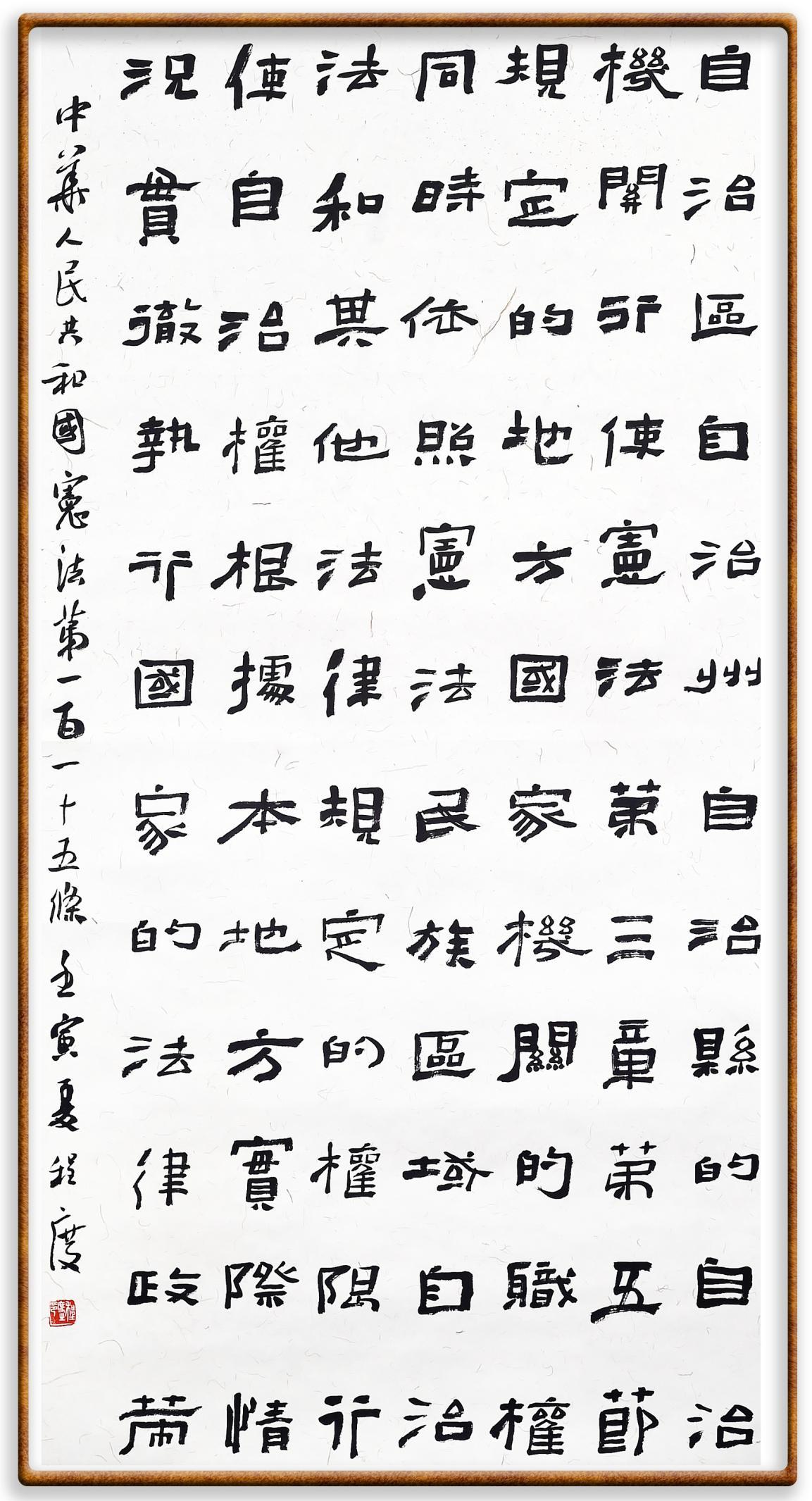繼《中華人民共和國(guó)民法典》《中華人民共和國(guó)土地管理法》《中華人民共和國(guó)土地管理法實(shí)施條例》《中華人民共和國(guó)法律援助法》之后,法治日?qǐng)?bào)社聯(lián)合北京市司法局、北京書(shū)法家協(xié)會(huì),將筆端對(duì)準(zhǔn)《中華人民共和國(guó)憲法》和《中華人民共和國(guó)行政處罰法》。