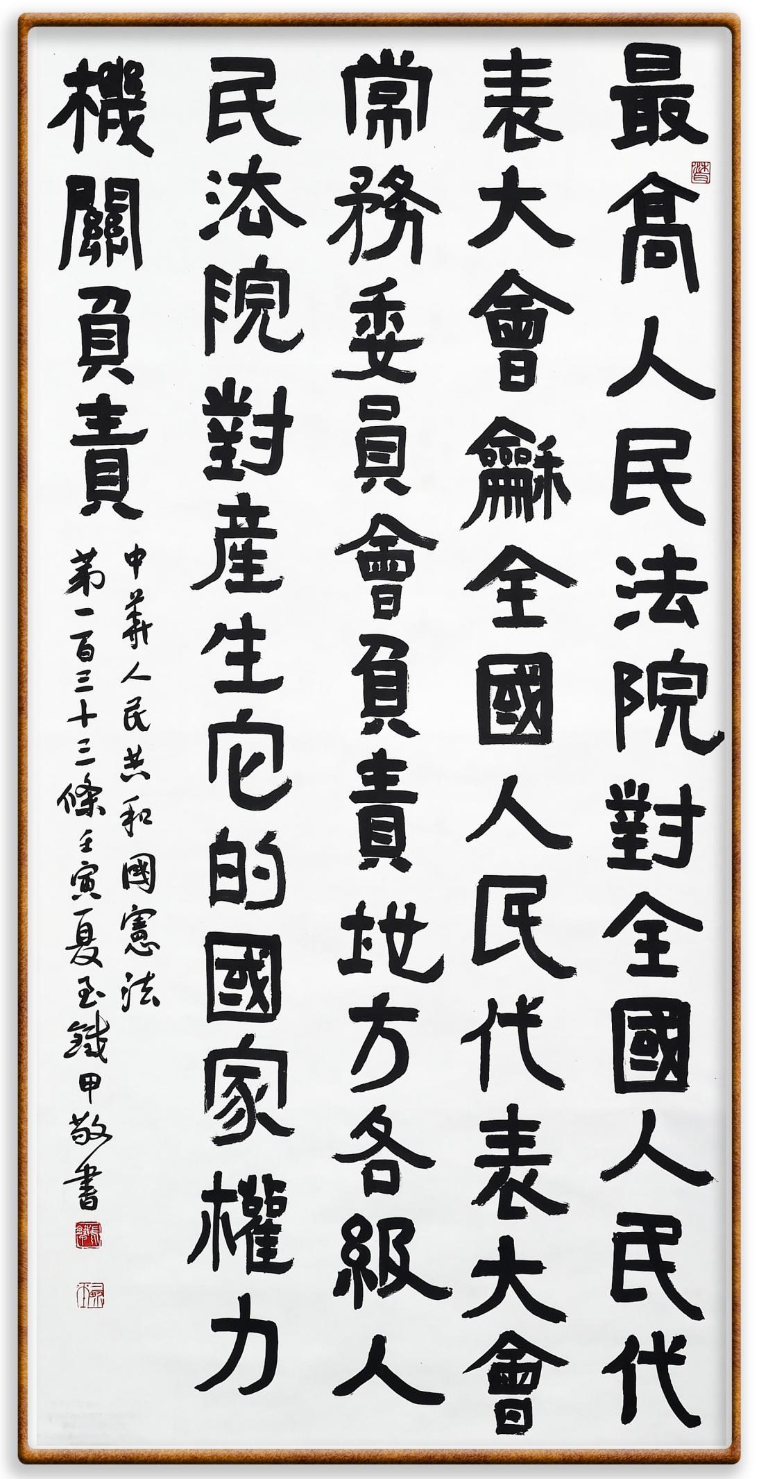 繼《中華人民共和國(guó)民法典》《中華人民共和國(guó)土地管理法》《中華人民共和國(guó)土地管理法實(shí)施條例》《中華人民共和國(guó)法律援助法》之后,法治日?qǐng)?bào)社聯(lián)合北京市司法局、北京書法家協(xié)會(huì),將筆端對(duì)準(zhǔn)《中華人民共和國(guó)憲法》和《中華人民共和國(guó)行政處罰法》。