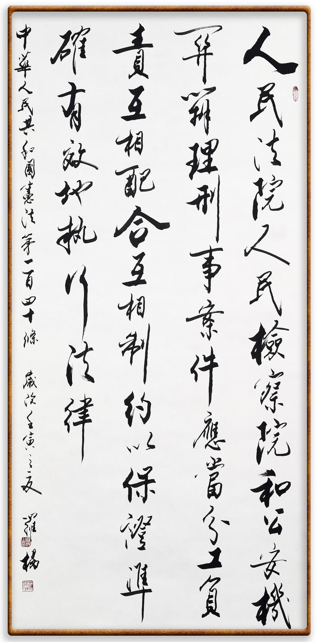 繼《中華人民共和國民法典》《中華人民共和國土地管理法》《中華人民共和國土地管理法實施條例》《中華人民共和國法律援助法》之后,法治日報社聯(lián)合北京市司法局、北京書法家協(xié)會,將筆端對準(zhǔn)《中華人民共和國憲法》和《中華人民共和國行政處罰法》。