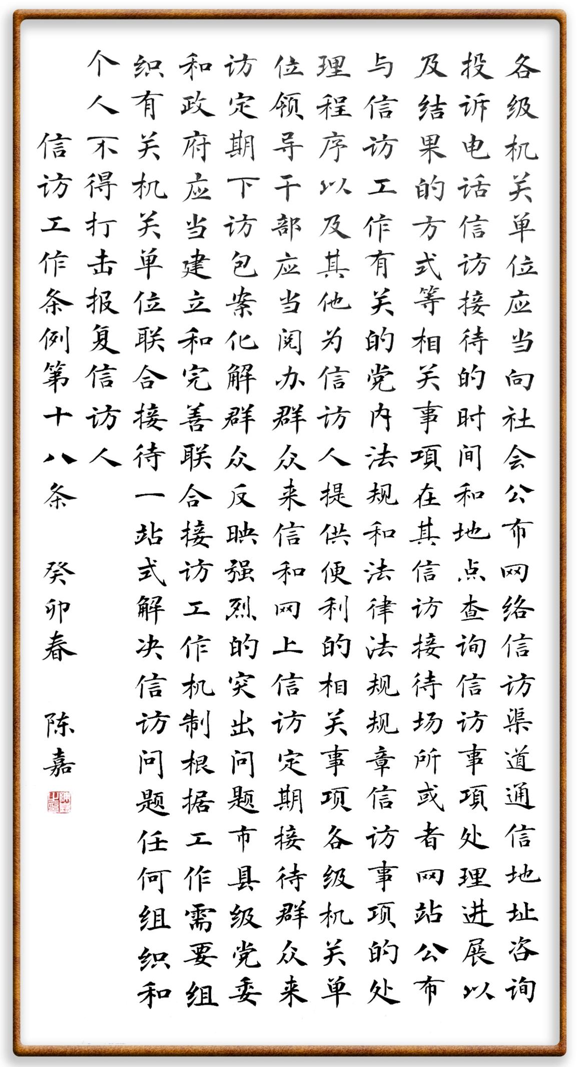 信訪工作條例第十八條 各級機關、單位應當向社會公布網(wǎng)絡信訪渠道、通信地址、咨詢投訴電話、信訪接待的時間和地點、查詢信訪事項處理進展以及結果的方式等相關事項,在其信訪接待場所或者網(wǎng)站公布與信訪工作有關的黨內法規(guī)和法律、法規(guī)、規(guī)章,信訪事項的處理程序,以及其他為信訪人提供便利的相關事項。