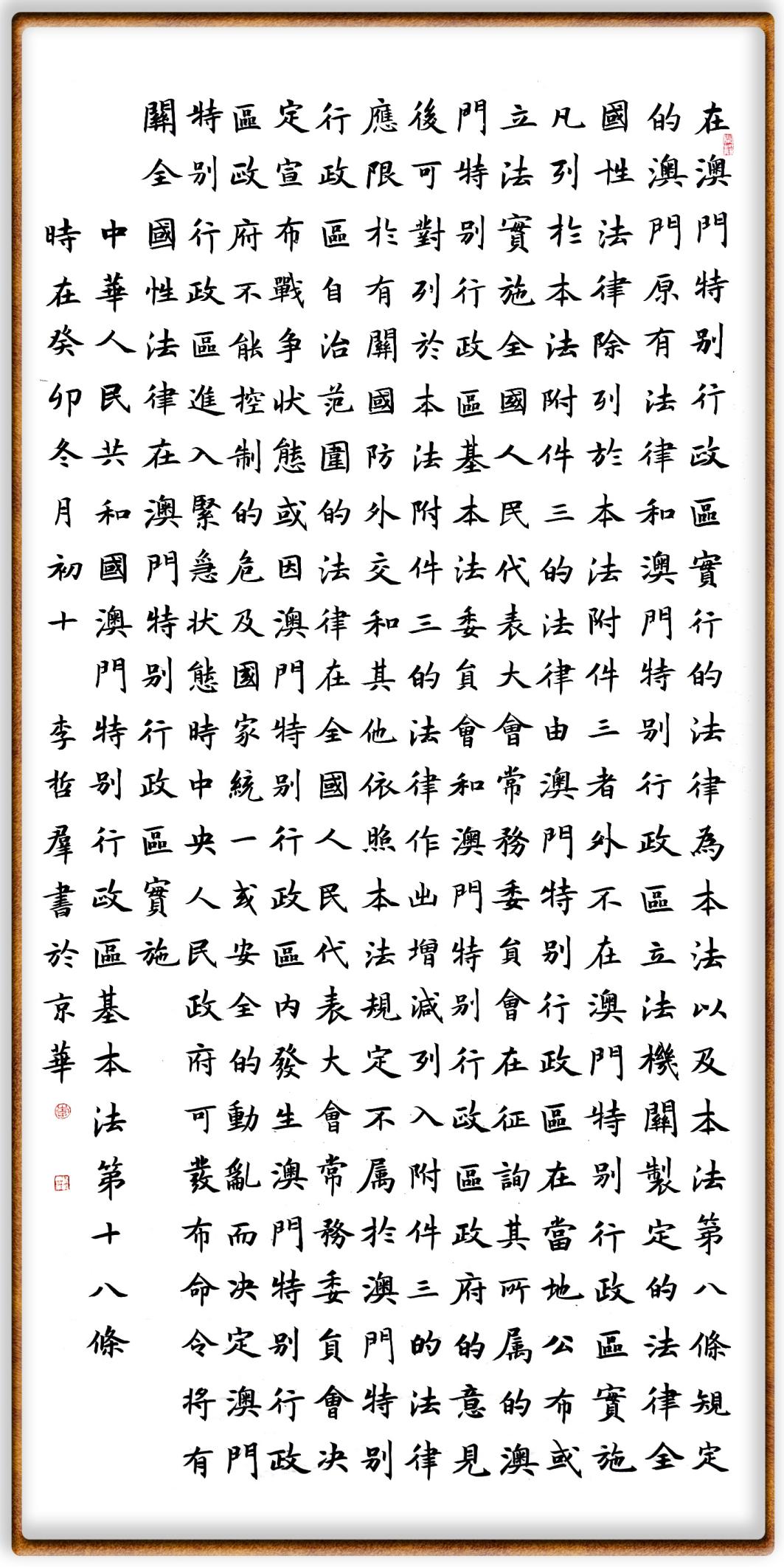 澳門基本法第十八條 在澳門特別行政區(qū)實(shí)行的法律為本法以及本法第八條規(guī)定的澳門原有法律和澳門特別行政區(qū)立法機(jī)關(guān)制定的法律。